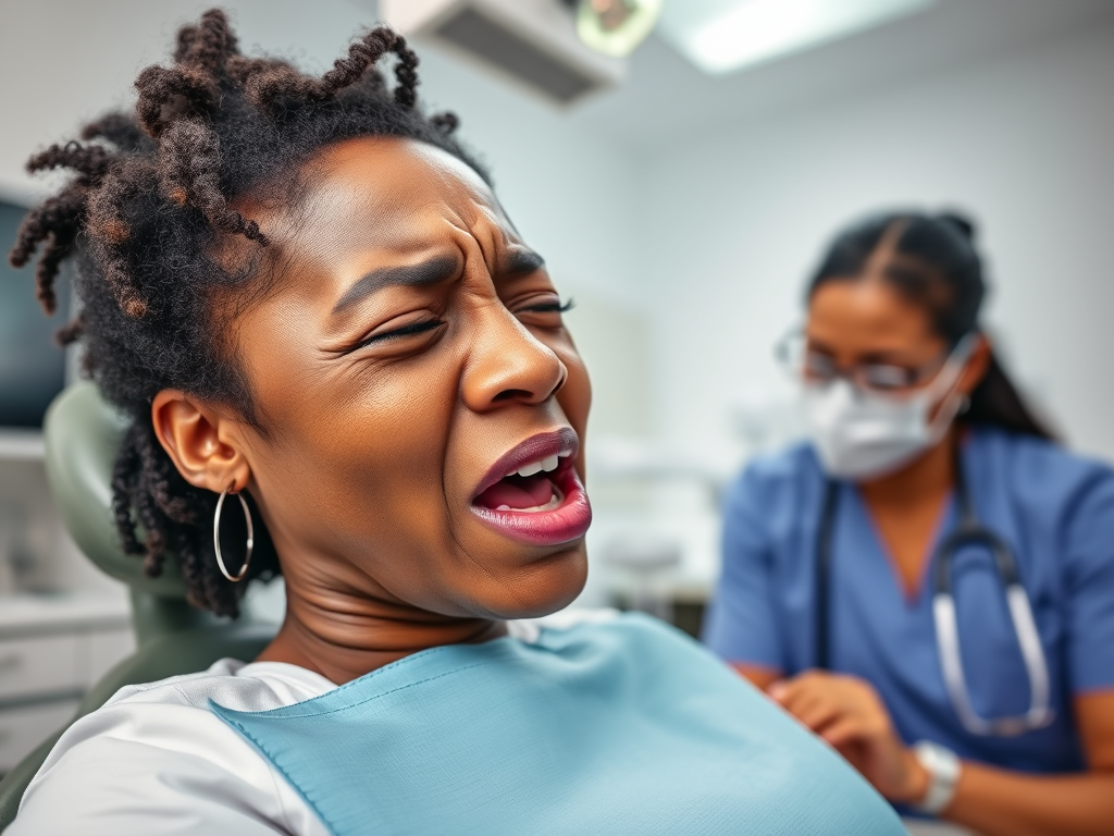 She injected me with Novocaine one more time and tried to pull the tooth, but it still hurt. Not as bad — but bad enough. This time, my hand stayed down. I was not going to assault this woman again. But while I managed to keep my hand to myself… my wig did not survive. Somehow, in the middle of my pain and panic, my wig had shifted off my head.